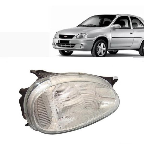 Farol Corsa Wagon 1994 até 1999 Adaptável Corsa Sedan e Pick Up 2000 até 2010. Lado direito (passageiro) cromado carcaça preta lente raiada vidro