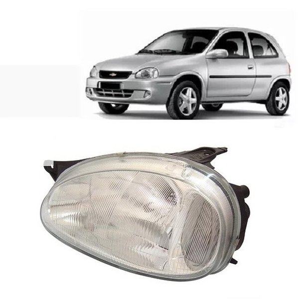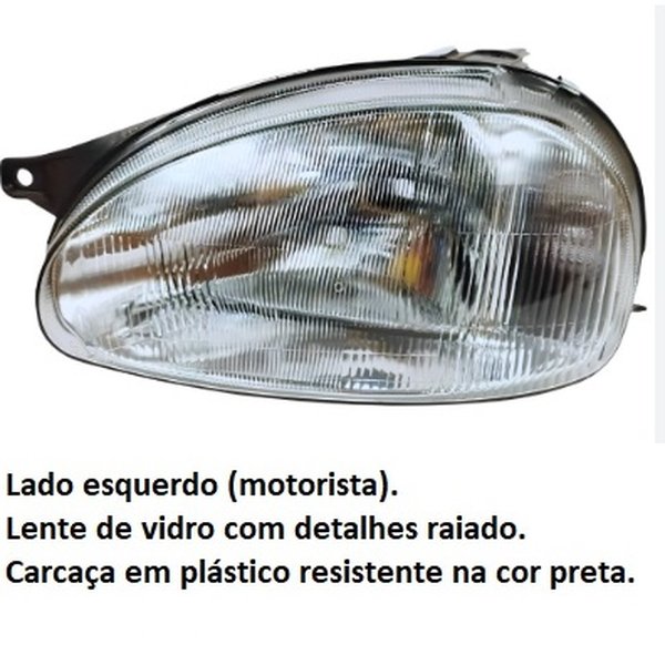 Farol Corsa Wagon 1994 até 1999 Adaptável Corsa Sedan e Pick Up 2000 até 2010. Lado esquerdo (motorista) cromado carcaça preta lente raiada vidro