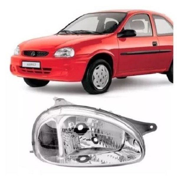Farol Corsa Classic 2000 até 2010 Adaptável Corsa Wagon 1994 até 1999. Lado direito (passageiro) cromado carcaça cinza lente lisa vidro pisca cristal.
